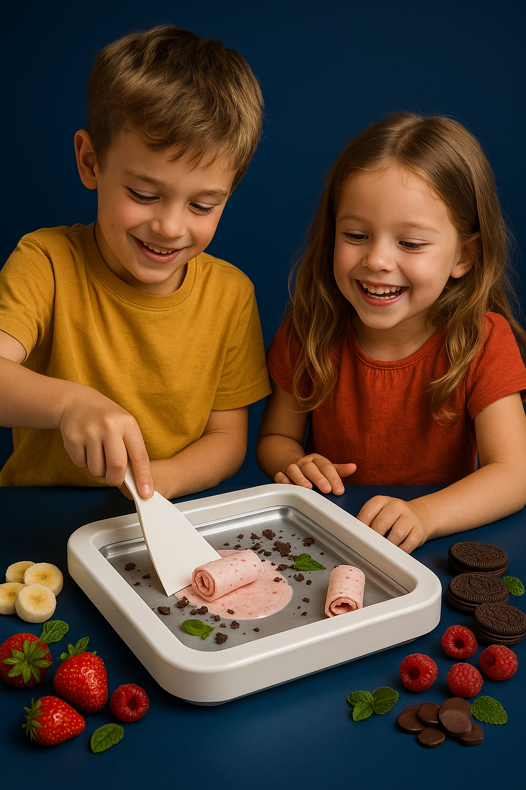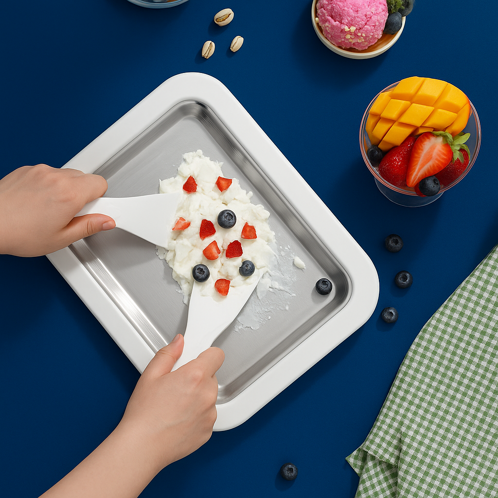 Mit FrostyRoll wird dein Zuhause zur Eiswerkstatt! Kinder, Eltern & Freunde zaubern gemeinsam kreative Ice Cream Rolls â ganz ohne Bildschirm, LĂ€rm oder Langeweile.
