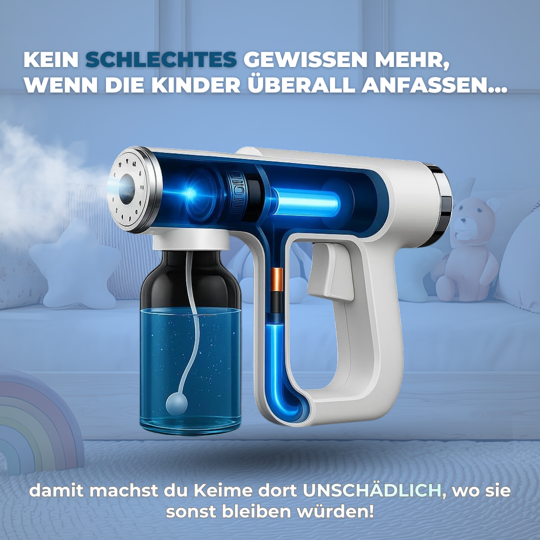 Der GermLess One macht Desinfektion schneller, sicherer und spürbar einfacher – besonders für Familien, die jeden Tag viele kleine Hände und Touchpoints sauber halten müssen.